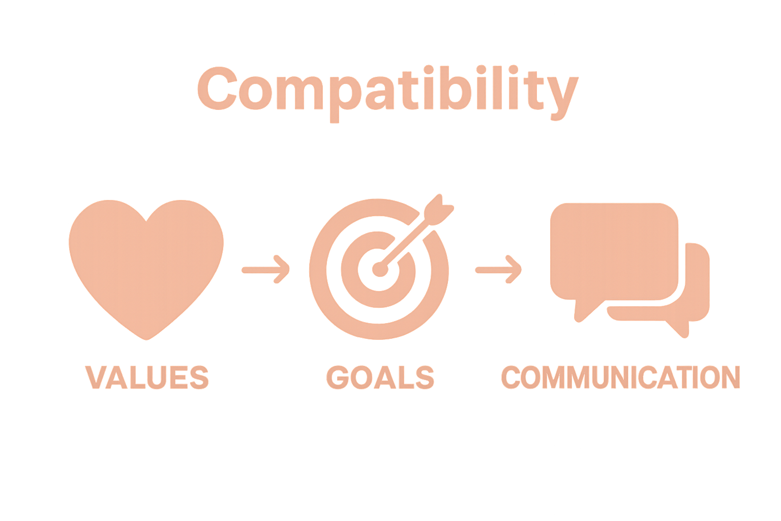 | Compatibility assessment predicts relationship satisfaction | Similar values and life goals are linked to higher relationship happiness and sustainability, making these questions vital. |